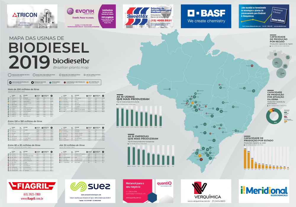 O mais confiável mapa do setor. Esta é a edição do conceituado mapa elaborado pela BiodieselBR em 2019.